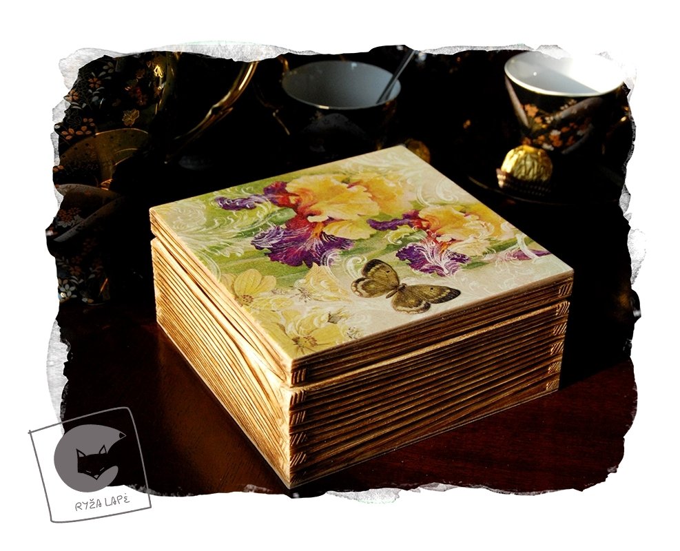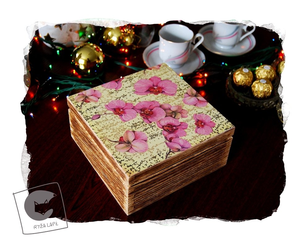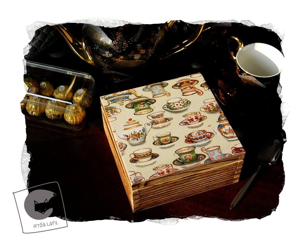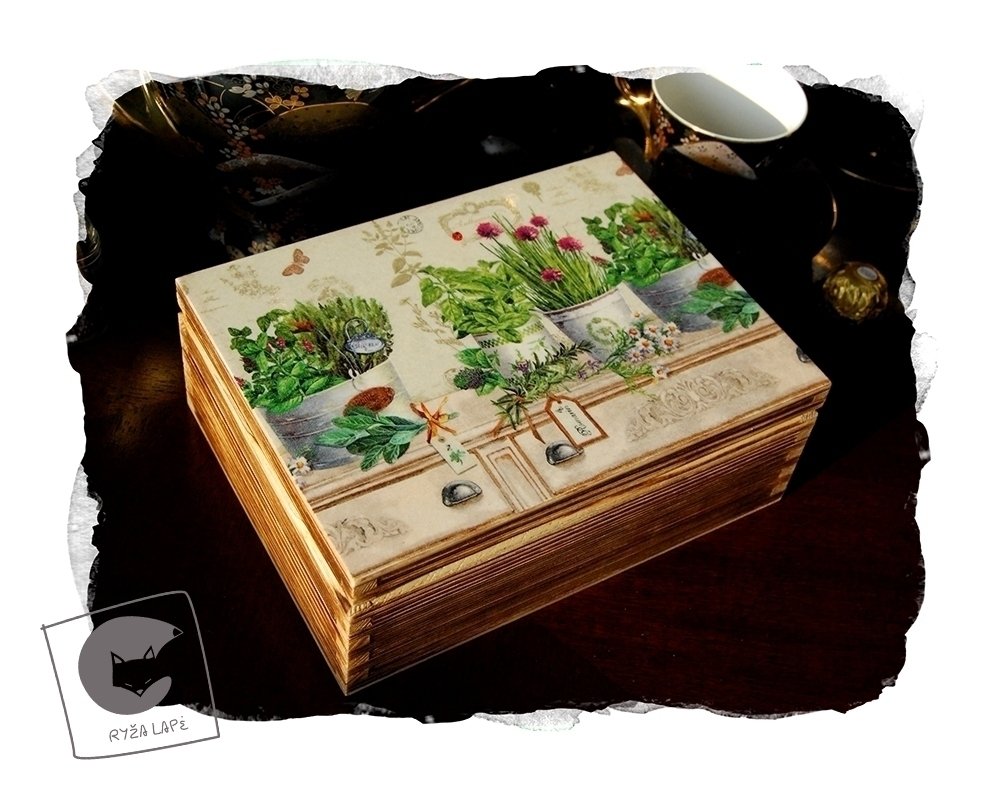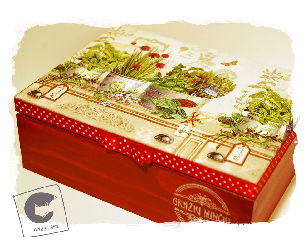 Dėžutės/arbatinės dekoruotos dekupažo ir pirografijos technikomis, dar kvepia natūralia mediena!