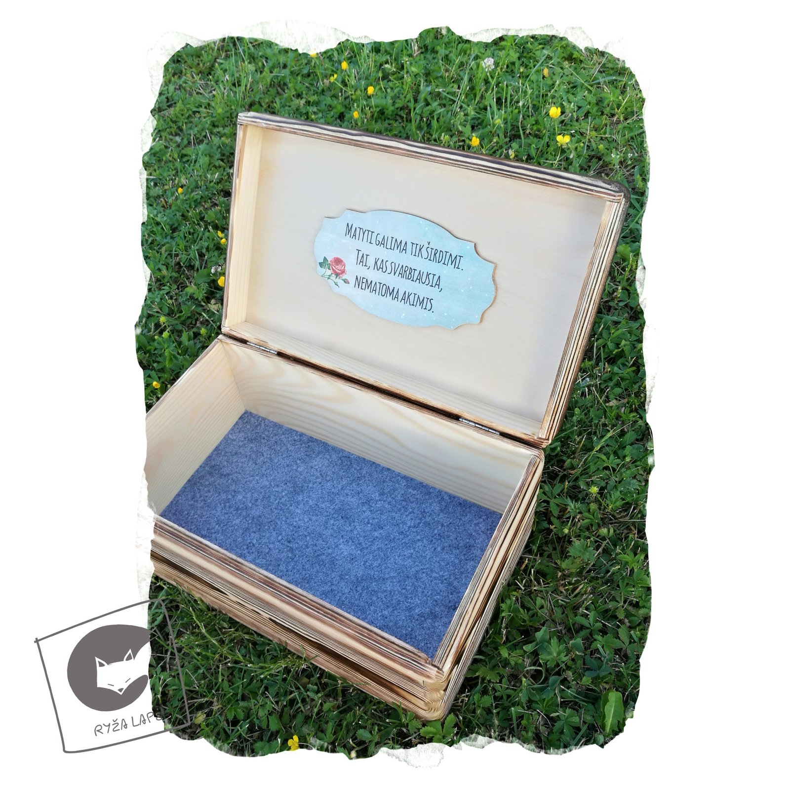 Galimi individualūs skirtingų formų ir dydžių dėžučių užsakymai su jums patinkančia aplikacija ar netgi jūsų nuotrauka. Rašykite savo norus adresu info@ryzalape.lt, o Ryža Lapė pasistengs juos įgyvendinti!